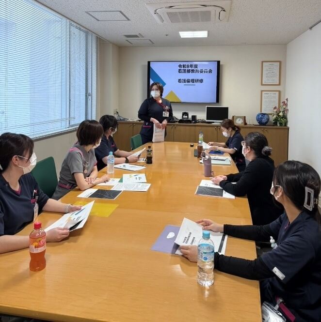 本研修は、教育委員の看護師2名が市立札幌病院の看護倫理研修に参加し、その学びをもとに、当院独自のプログラムとして企画・実施したものです。